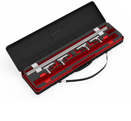 Alle Komponenten der Counter One Extension werden sicher und kompakt in einem robusten ABS-Koffer (120 x 21 x 40 cm, 8 kg)) verpackt. Dieser sorgt nicht nur für maximalen Schutz während des Transports, sondern ermöglicht auch eine einfache und platzsparende Lagerung.