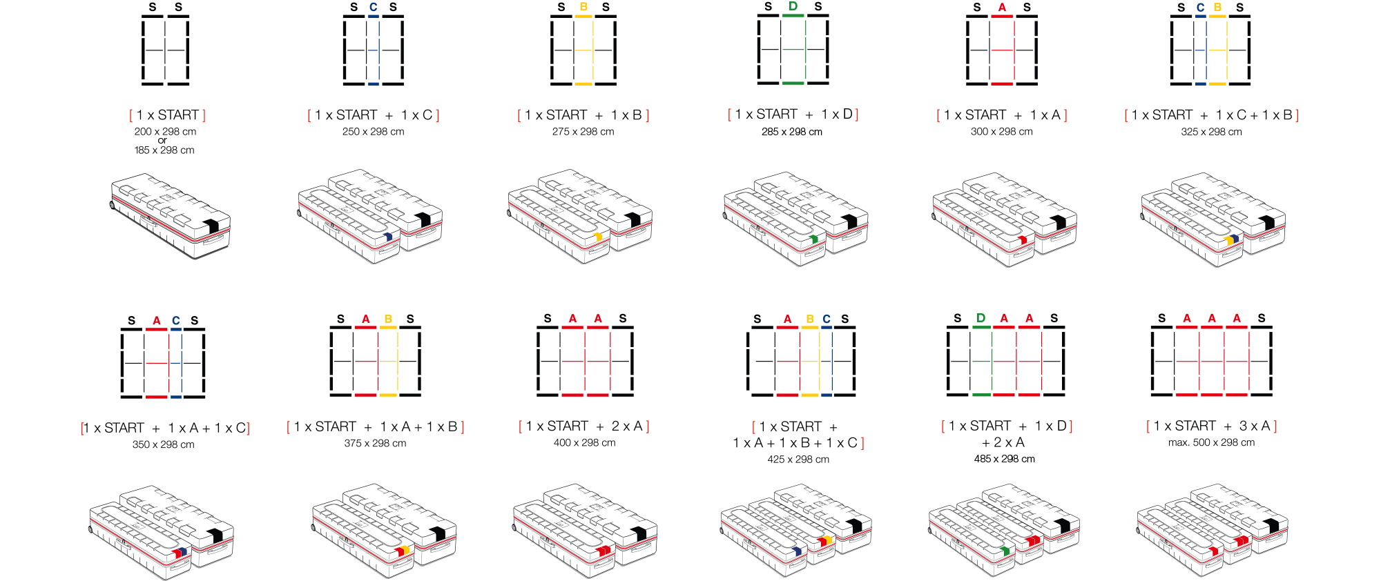 Tap into the modular world offered by BIG UP™ with a 200 cm wide starter module. Then, expand your system to a maximum width of 1000 cm with 50, 75 or 100 cm wide add-on modules. We also offer different heights of 200, 230, 248 and 298 cm. Simply connect the add-on modules between the two starter modules and the BIG UP™ can flexibly adapt to any space – and all without the need for tools!