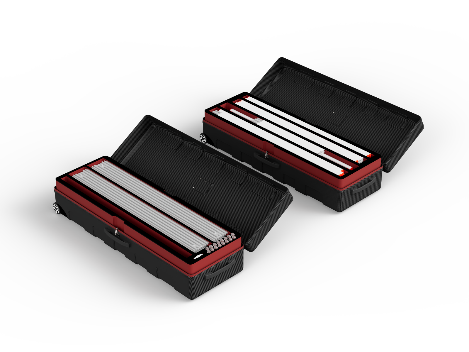 BIG UP™ is packed in a handy ABS hard shell case just 1.2 metres in length, making it easy to transport in any passenger car or, in conjunction with other systems, on a cost-effective Euro pallet. Each part is uniquely numbered, which makes it easy to locate its dedicated place inside the hard shell case. For added protection, the case is equipped with foam inserts. At just 32 kg, BIG UP™ is lightweight and easy to transport using the castors and handles on the case.