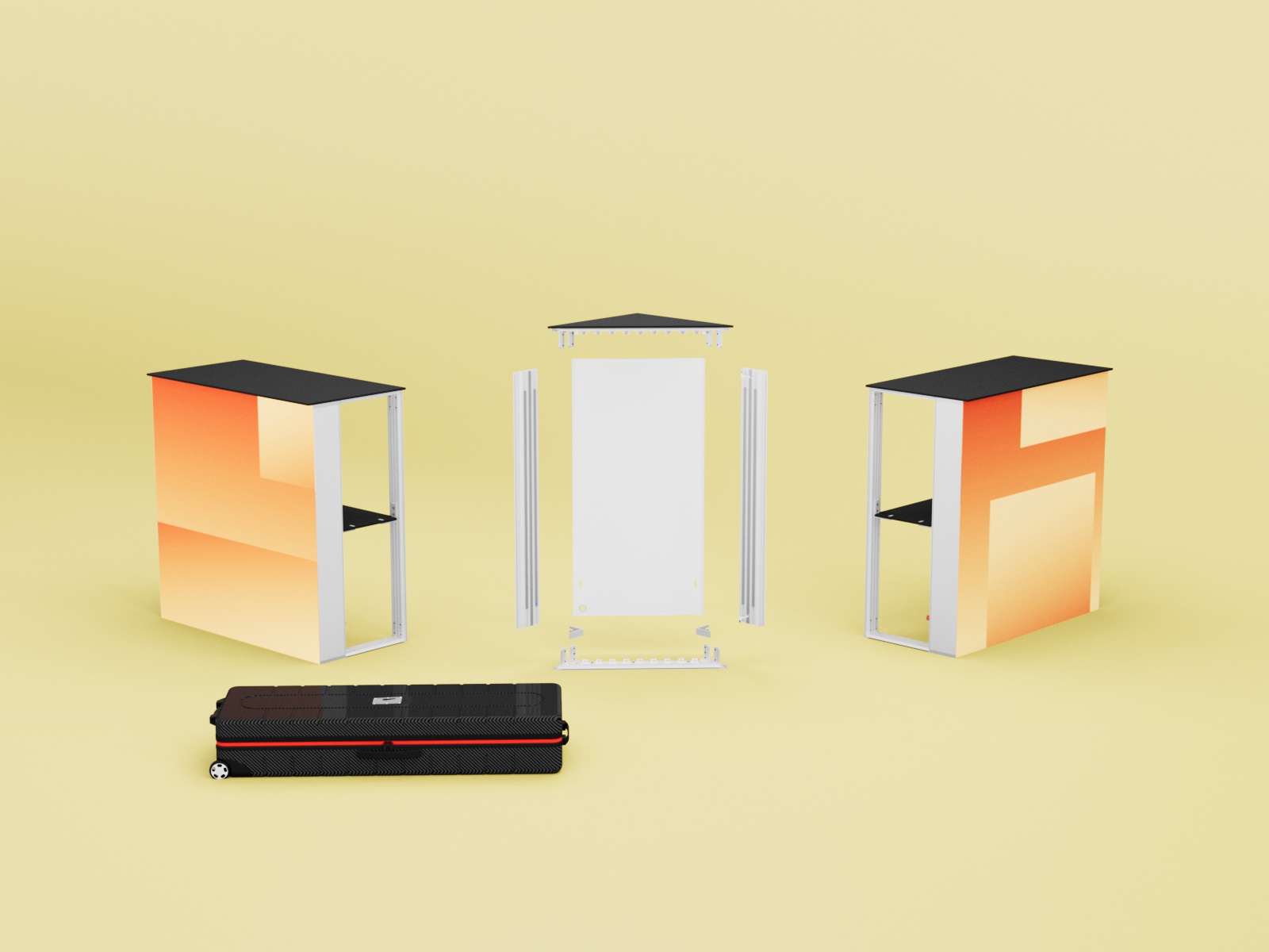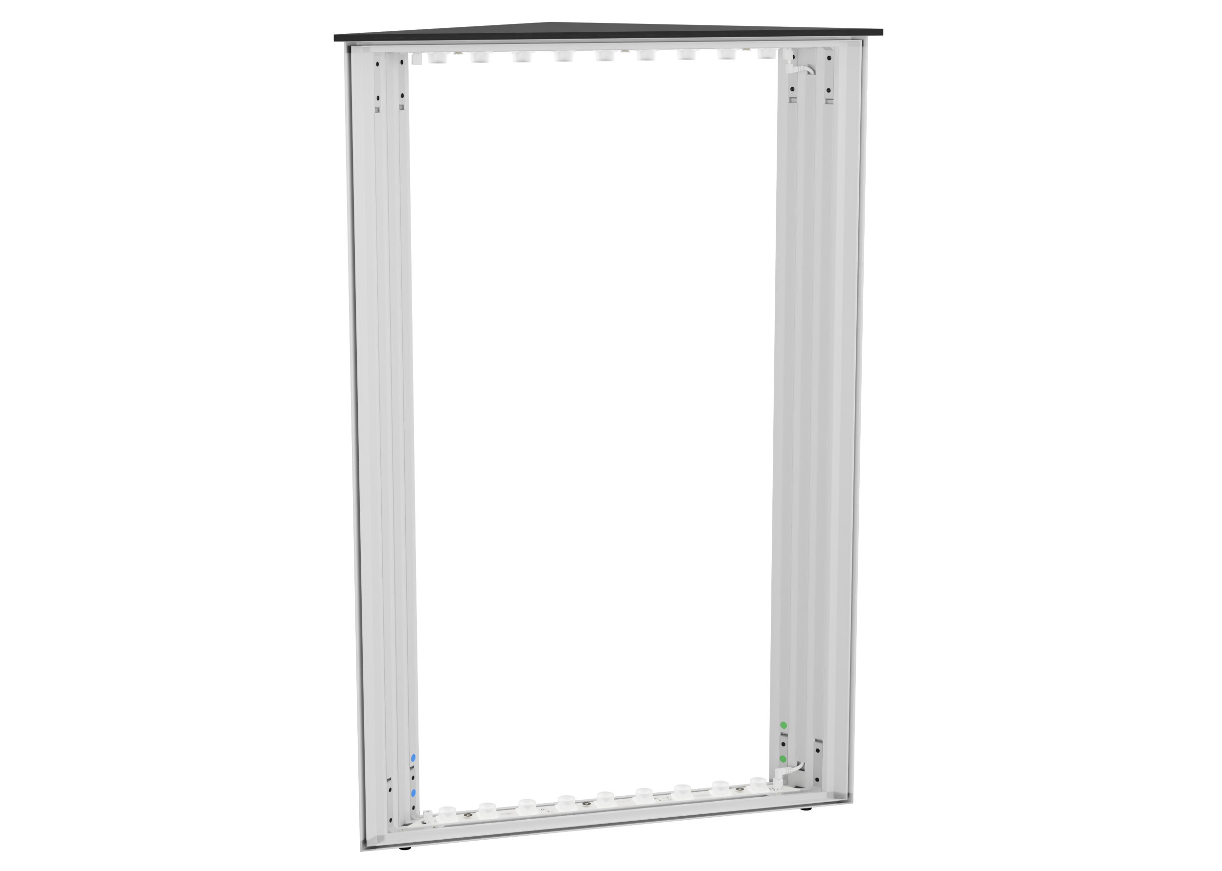 The Counter ONE CORNER allows you to connect two Counter One systems with ease, creating a stylish corner that is beautifully illuminated. This accessory enhances your booth design and adds a touch of sophistication.