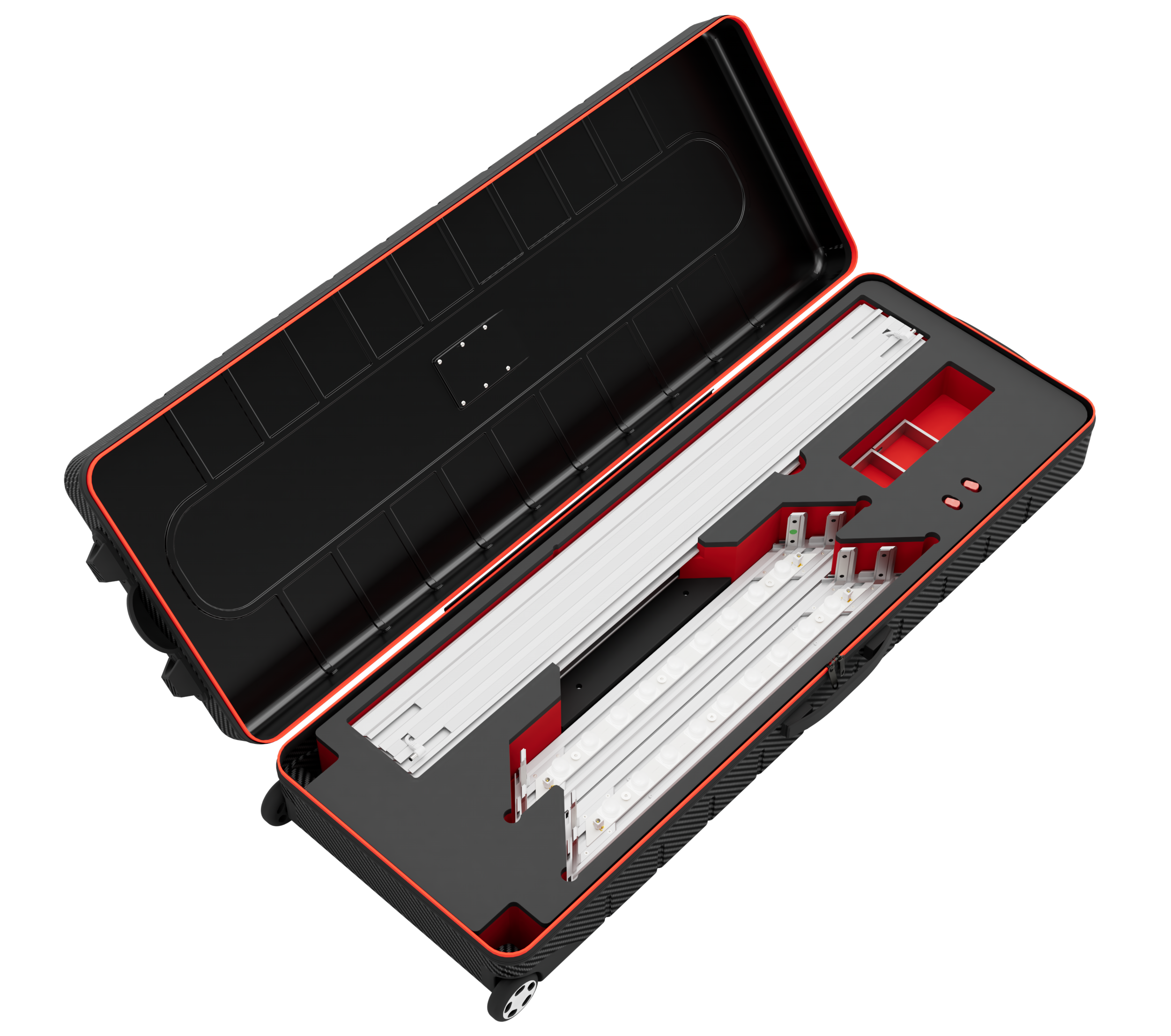 All components of the Counter ONE Corner are securely and compactly packed in a sturdy ABS case. This ensures maximum protection during transport while also allowing for easy and space-saving storage.