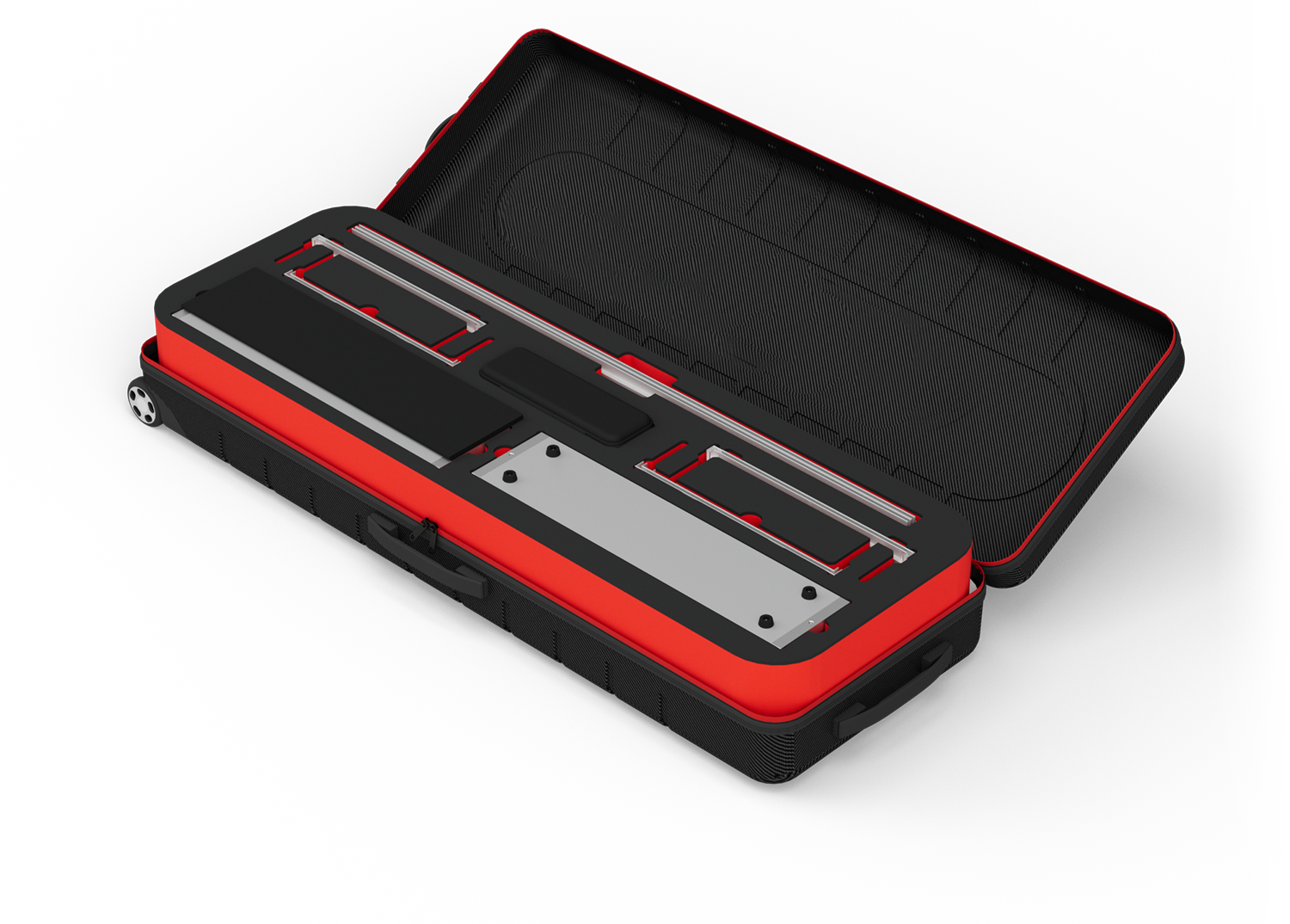 Counter One Mini comes in parts, packed in a sturdy ABS transport case. This reduces shipping volume and waste. Assembly is quick: connect the frame, attach the driver and cables – plug in and it’s ready to go.