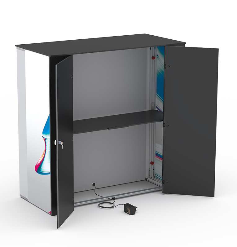 The freestanding counter one is a perfect solution for exhibitions, trade fairs, promotions etc.