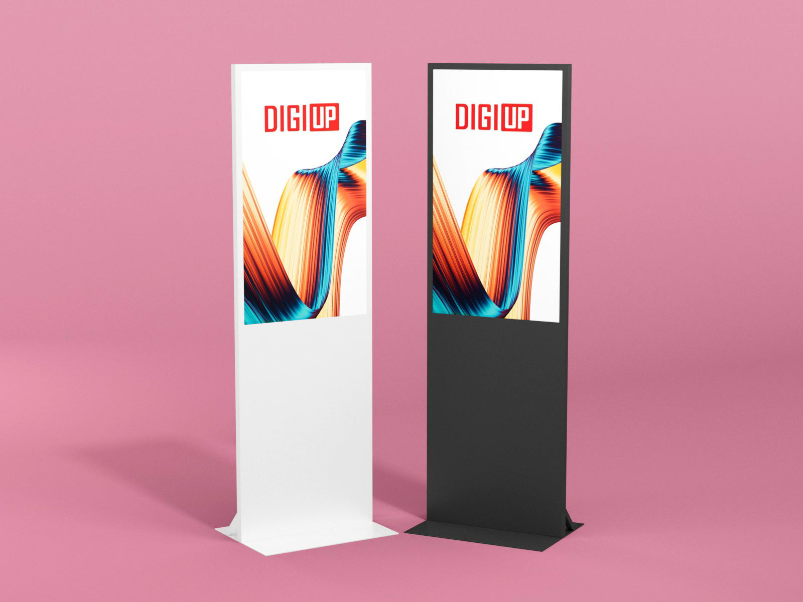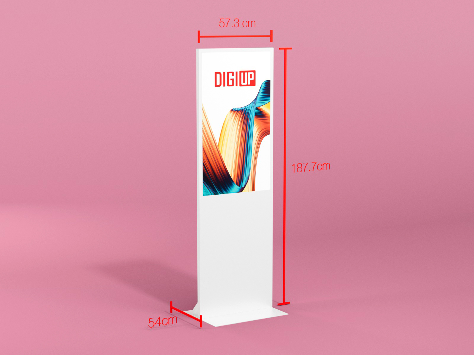 The DIGIUP Stele is highly versatile and can be used in various settings. For example, it is ideal for advertising in shop windows, where it can attract the attention of passersby and showcase product promotions. In restaurants, it can serve as a digital menu to display daily specials or promotions. At trade shows and events, the DIGIUP Stele can be used to convey information about products, services, or the company in an engaging way. In hotel or office lobbies, it acts as a greeting and information tool for visitors. In retail environments, the stele can highlight new products or special offers, helping to boost sales. Thanks to the ability to update content via Wi-Fi, LAN, or an optional 4G module, the DIGIUP Stele is flexible and ready for immediate use.