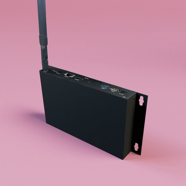 Content can be transferred to the display via a USB stick or online using a Content Management System. The display plays content whether the USB stick is removed or the internet connection is lost. The transferred content is always saved on the display in both cases and plays directly from the integrated Android Media Player. If neither WLAN nor LAN is available or if the internet connection is beyond the end user’s control, an optional 4G module can be integrated, allowing the customer to update their display via a mobile network.