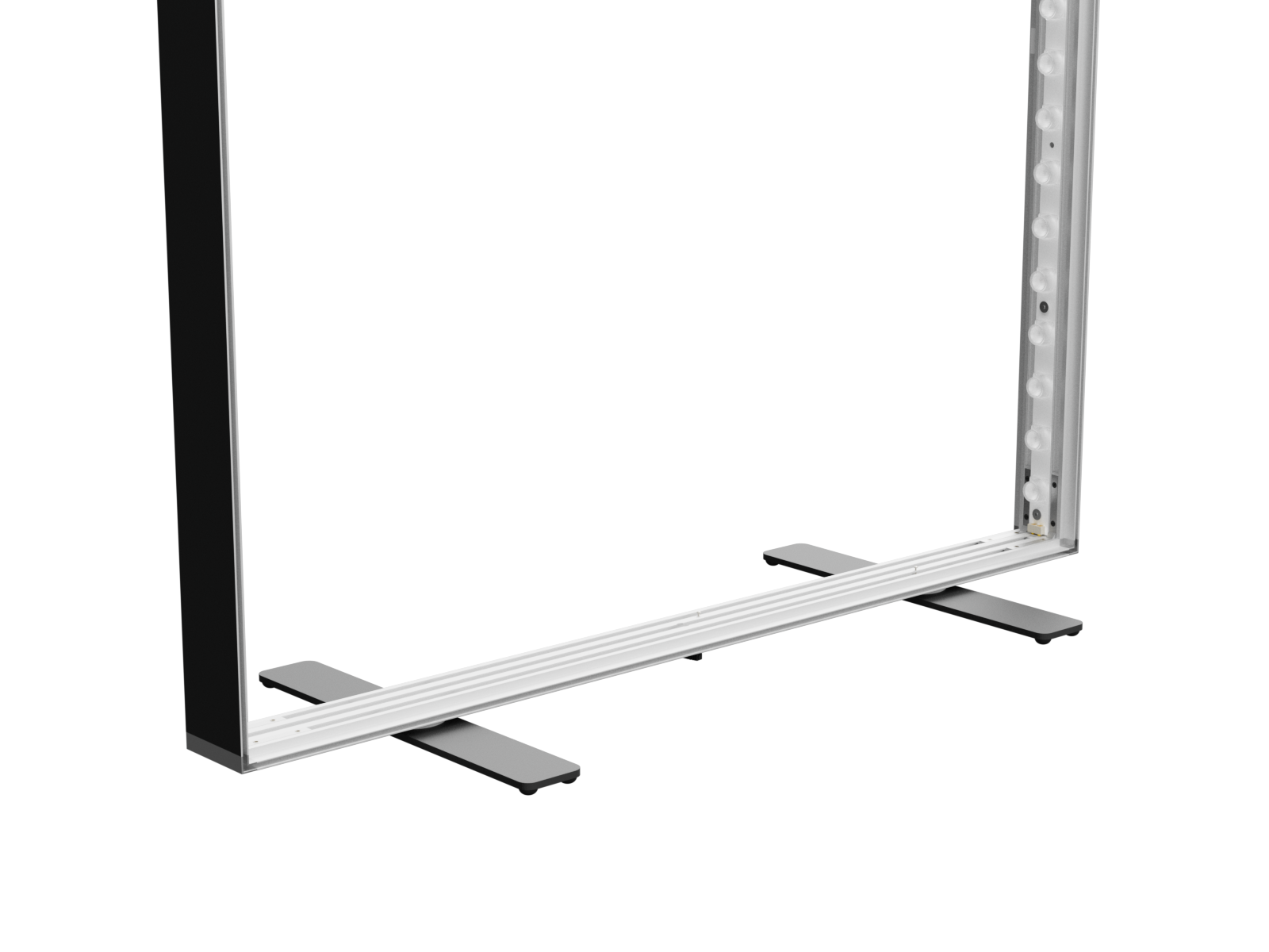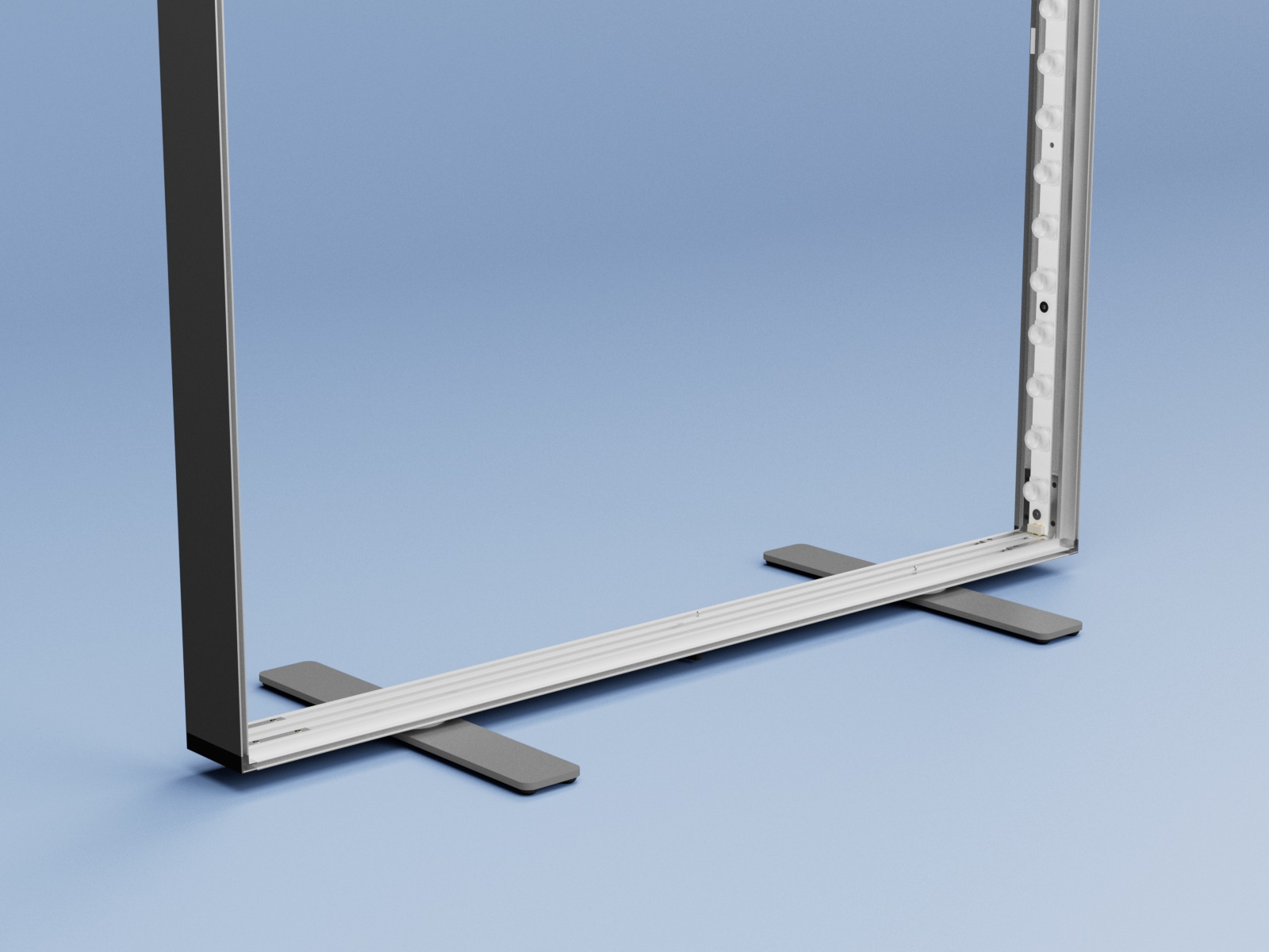 One profile – profile dimension (depth) 80 mm / 3.2” is used for this display frame. LEDUP® is made of high quality anodized aluminum and are UV resistent. The design and shape are very slim and timelessly elegant.