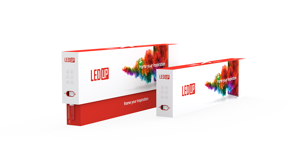 LEDUP® is surprisingly lightweight. A light box display with dimensions of 100 x 200 cm weighs just 8.7 kg and comes in a handy, environmentally friendly box, which is also equipped with a separate compartment for easy transport of digital prints.