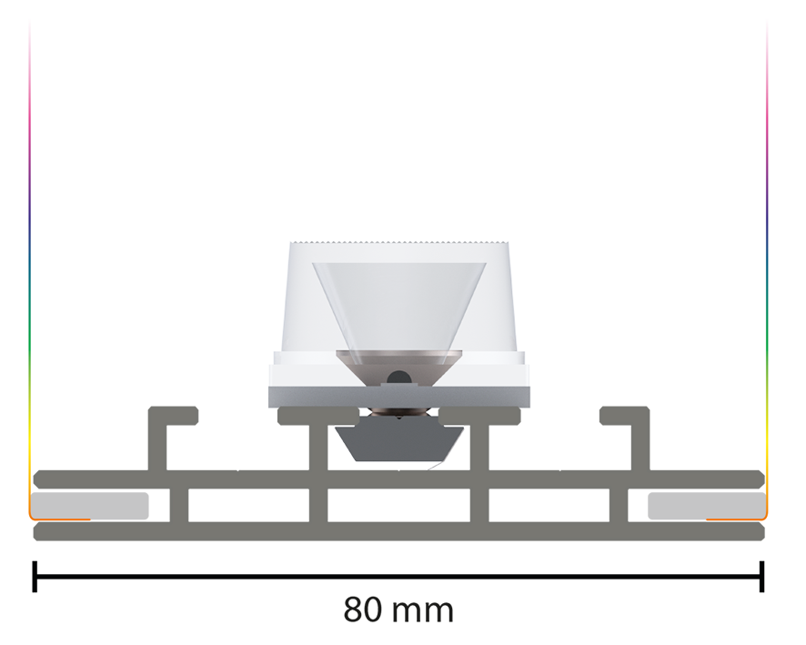MINI LEDUP® consist of just a few parts and can be quickly assembled without tools. Both allow for quick and easy use. Simply pull out the components from the carrier, connect them and set up the preassembled base tracks – done! The silicon lip edging allows for easy, flat mounting of your print media and can be easily exchanged.