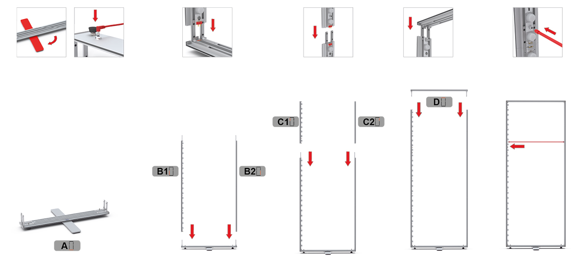 Frames can be delivered in parts. This safes transport costs and packing material. Assemble the frame, connect driver and cables – plug it in and finished.