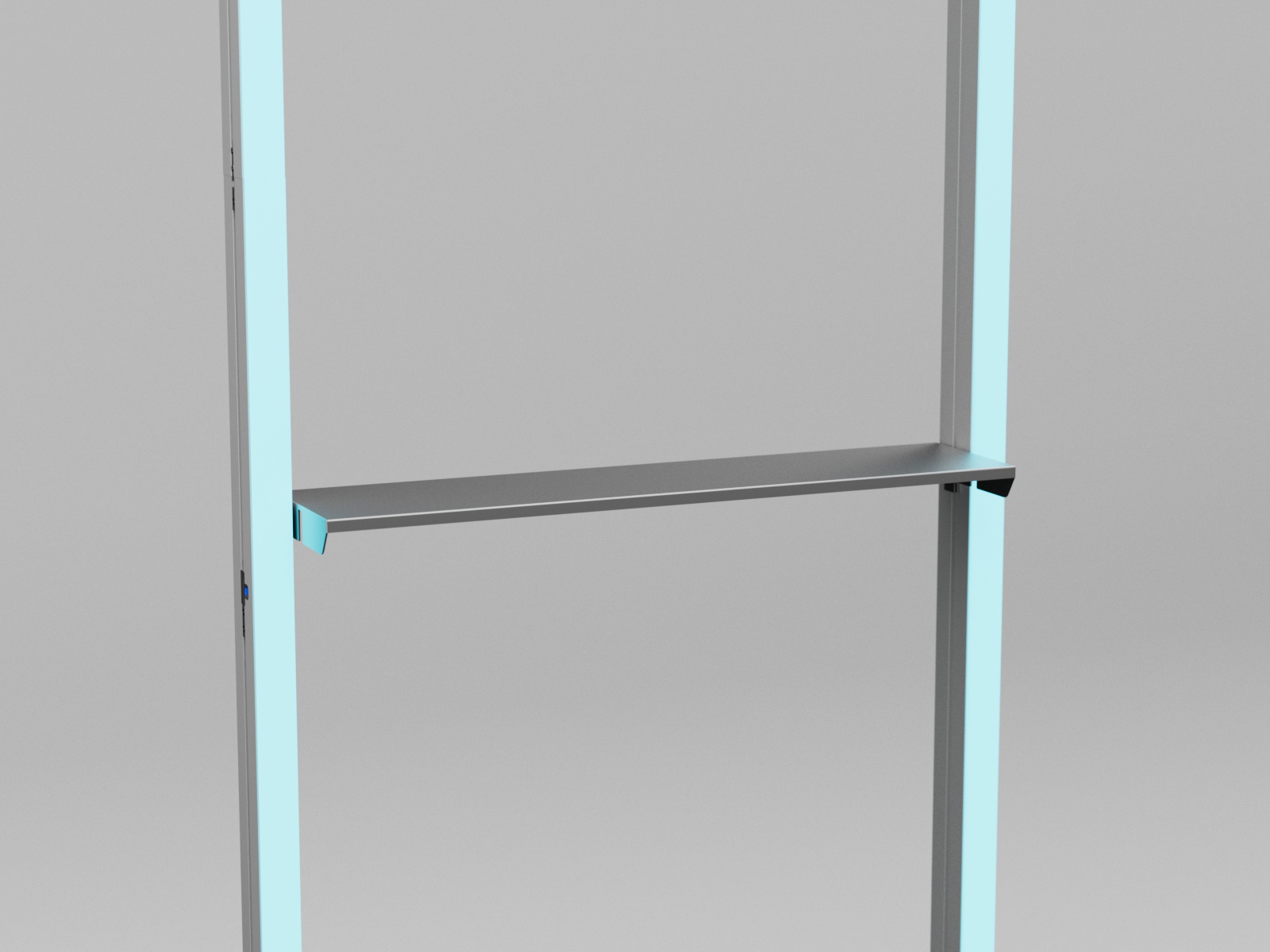 Like all LINEUP components, the accessory shelf is designed for easy, tool-free mounting. Simply attach it to your existing frame structure using the modular connector system — no tools or special equipment required.