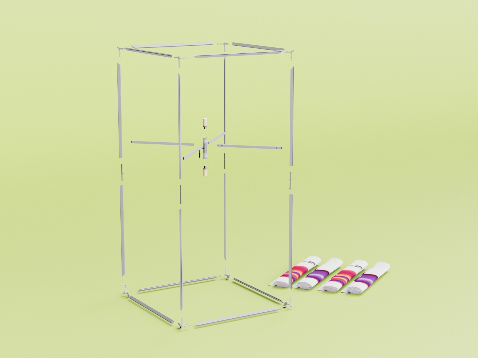• 124x124 cm base with heights of 200, 248, and 298 cm