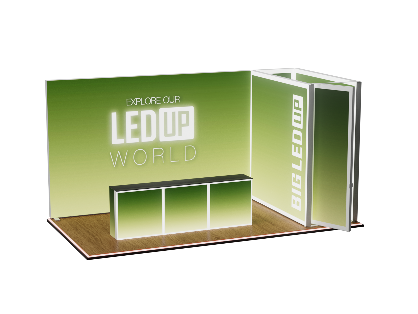 The BIG LEDUP 6x3 Set is crafted for those who require a larger display while maintaining portability. This setup offers an expansive 6x3 meter stand, making it perfect for larger exhibition spaces. The set combines a powerful visual presence with ease of transport, all packaged in durable ABS cases. Customize your layout to perfectly match your event or branding needs.
