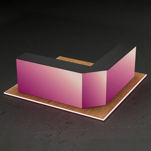 The COUNTER MAXI Set combines two large-format COUNTER MAX units with a central Extension Set, forming one extra-wide counter with a unified, backlit front graphic. Designed for large-scale presentations, product launches, or premium event environments – this setup delivers maximum visual impact with minimal setup time.