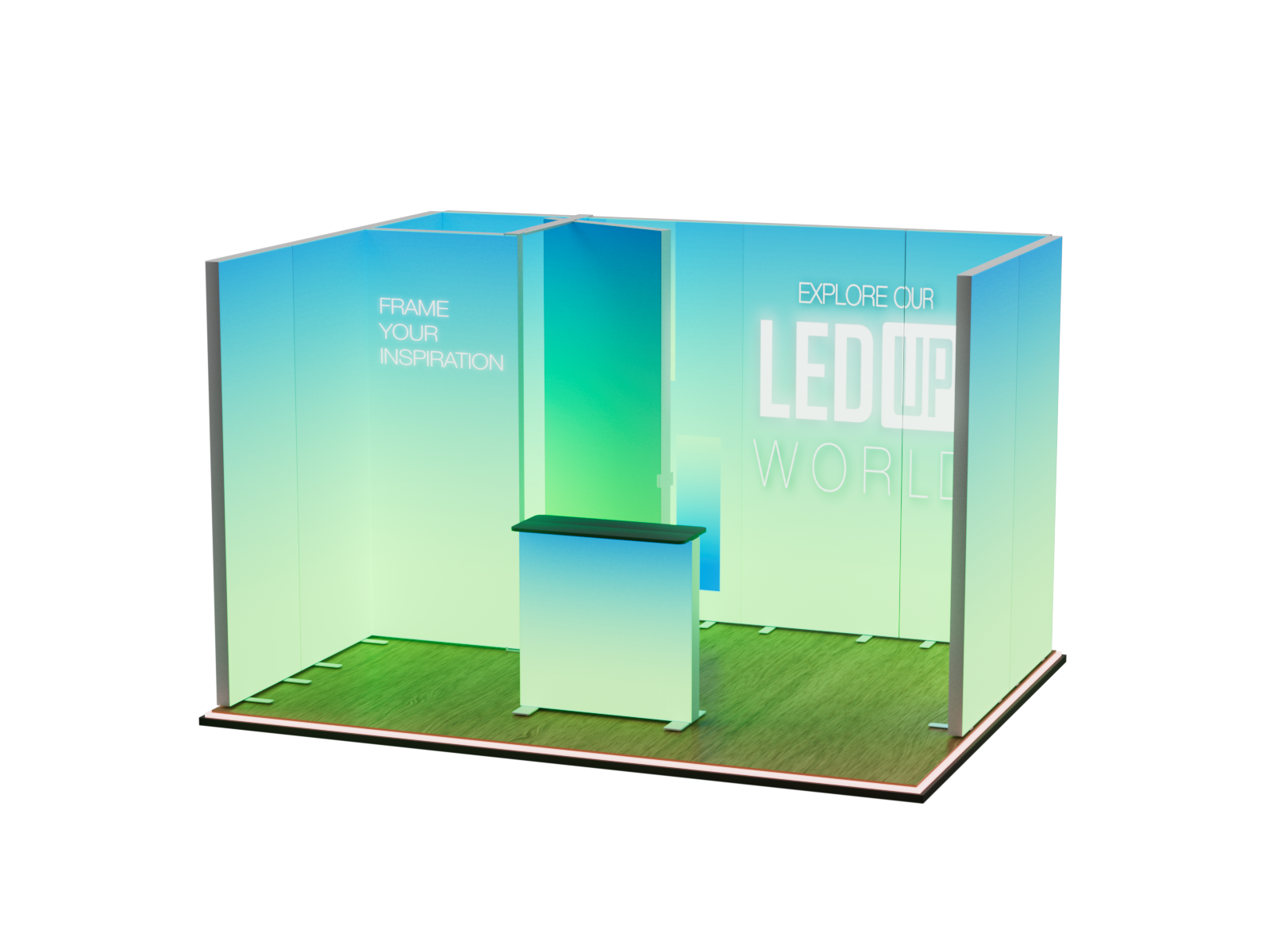 The LEDUP Set DEAN 4x3 is composed of 10 LEDUP frames, 1 LEDUP door, and 1 LEDUP counter, making it perfect for creating a high-impact display in larger spaces. With the included LEDUP door, you can easily build a booth or private area, adding versatility to your setup. The set offers outstanding visual presence and is fully customizable to meet your branding requirements. Packed in lightweight ABS cases for easy transport, it ensures a hassle-free assembly process. Ideal for trade shows, exhibitions, and promotional events, the LEDUP Set DEAN 4x3 allows for premium displays with the added option of a private space.